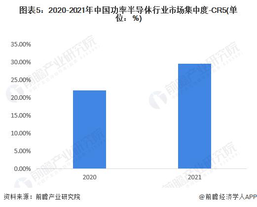 目前,中國(guó)功率半導(dǎo)體行業(yè)整體的市場(chǎng)集中度在不斷提升,從 2020 年 CR5 為 22.05% 提升至 2021 年的 29.58%,表明國(guó)內(nèi)頭部代表企業(yè)規(guī)模在不斷擴(kuò)大,市場(chǎng)競(jìng)爭(zhēng)優(yōu)勢(shì)愈發(fā)明顯。