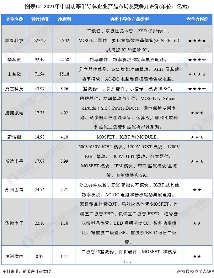 文泰科技公司是全球汽車功率半導(dǎo)體領(lǐng)先廠商,公司半導(dǎo)體業(yè)務(wù)很好地抓住了新能源智能汽車發(fā)展的機(jī)遇,2021 年規(guī)模躍居全球功率分立器件半導(dǎo)體公司第 6 位,從營(yíng)收及凈利潤(rùn)來(lái)看,國(guó)內(nèi)市場(chǎng)穩(wěn)居行業(yè)龍頭地位。緊隨其后的是華潤(rùn)微及士蘭微,功率半導(dǎo)體產(chǎn)品較為齊全,綜合競(jìng)爭(zhēng)力強(qiáng)勁。